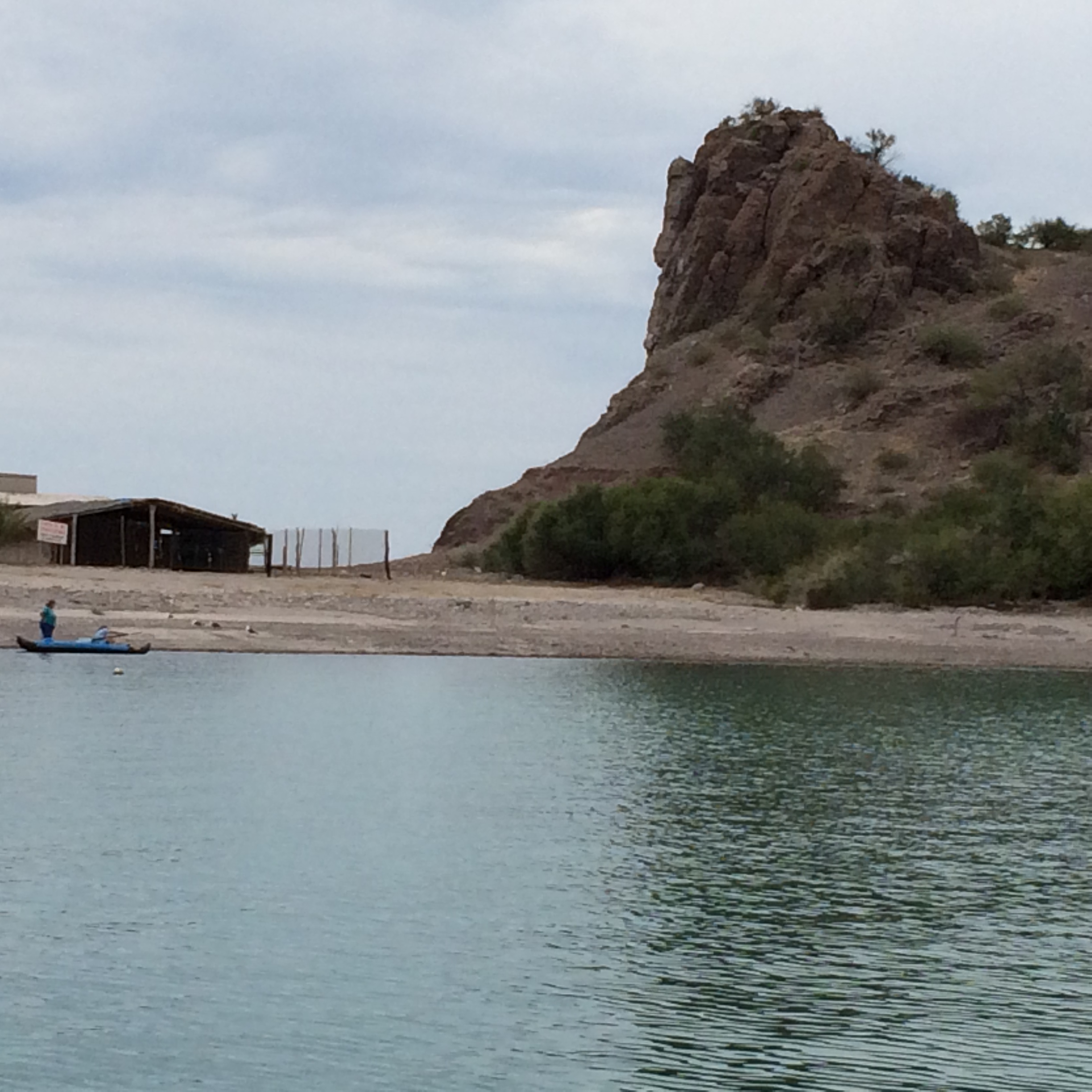 After sailing from Loreto out of Puerto Escondido, we anchor the boat in a small bay of turquoise water, surrounded by rock walls on three sides with a small, empty-looking sand beach. Agua Verde, this bay is accurately named. We dinghy ashore to see if the “restaurant” is open.