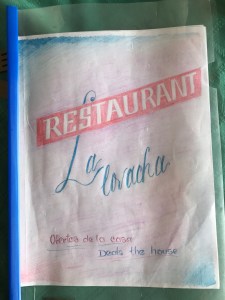 A half-dozen Appetizers; entrees of beef, chicken, seafood; even a couple of vegetarian options; a wine list. Most dishes were what you’d find in Europe or the U.S., translated into Spanish. The lone traditional dish: Ropa Vieja (more tasty sounding if not translated). “Old clothes” is shredded beef.