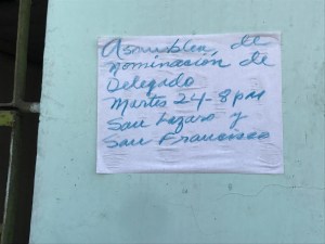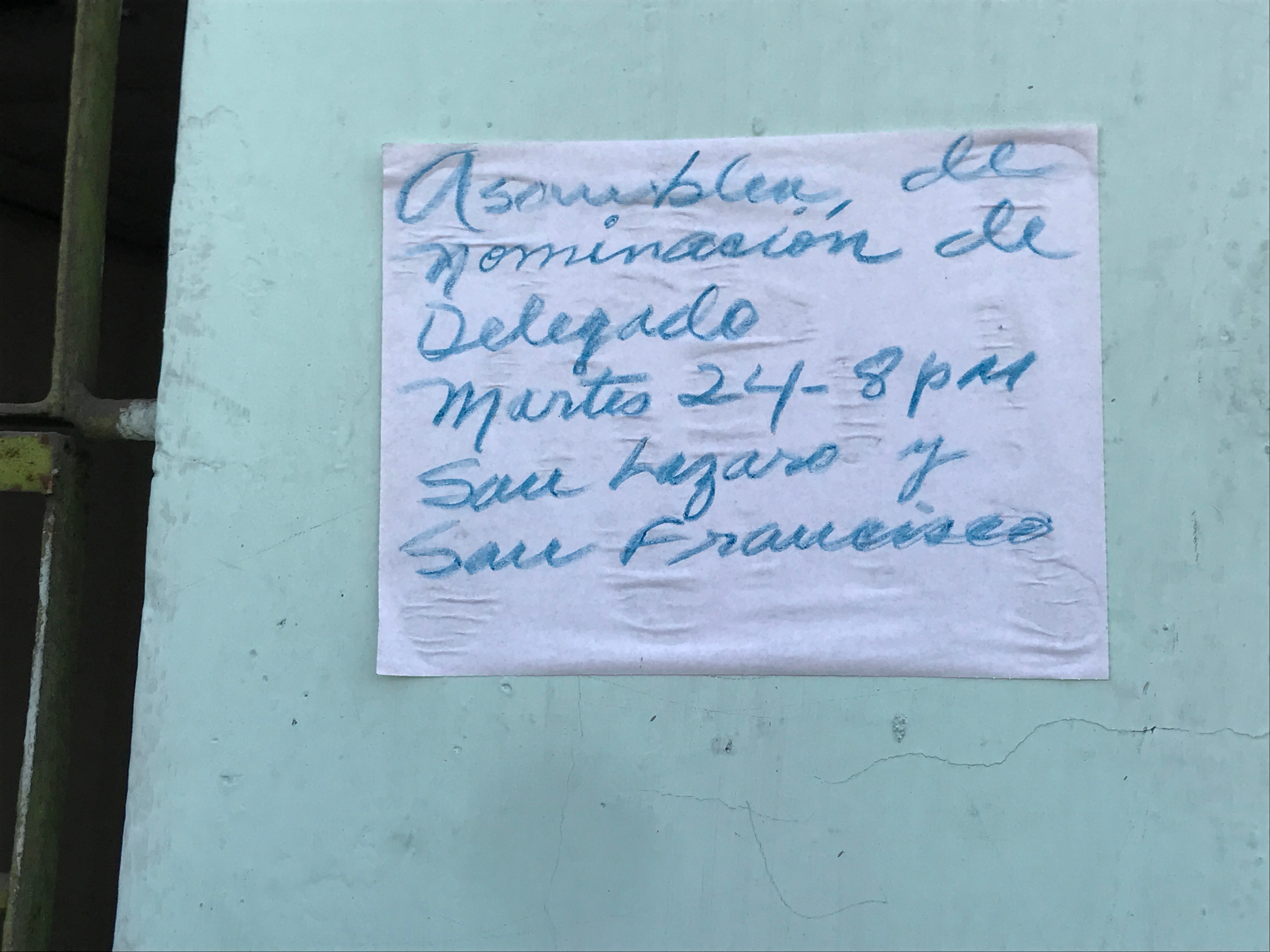 “Assemble to nominate delegate (date & place)” Sign on neighborhood building