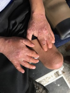Moreover, he held the prosthesis off the ground as he walked. We found that his stump had shrunken, was very loose in the socket of his prosthesis, and had already developed a couple of inflamed, sore spots. I was worried that the skin would soon break down, and probably get infected.