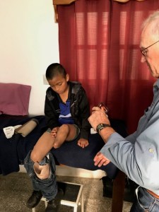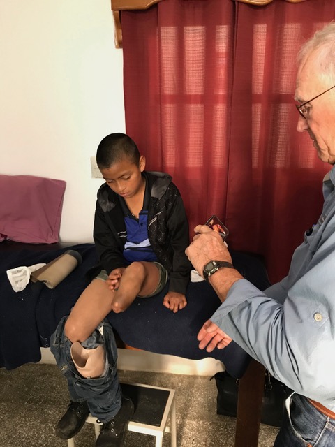 Mario is a smiling, happy boy. His prosthesis is irritating his stump, a problem of sweating and not washing and drying its “sleeve” at night. We bought him another polyurethane sleeve so he can alternate these and wash / dry after every wearing. Goal is to get him back on the soccer field.